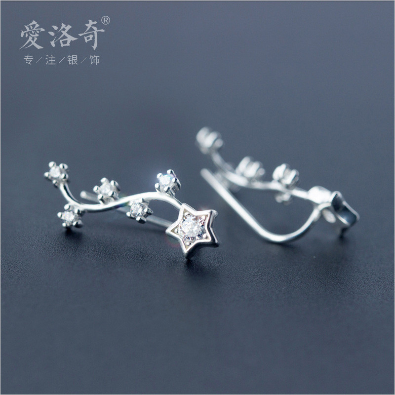 s925 sterling silver unique fashion silver rhinestone chic earrings