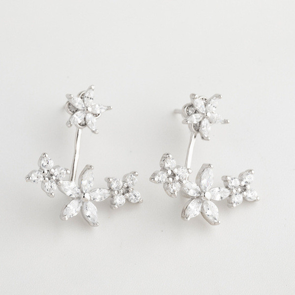 s925 sterling silver small trendy chic rhinestone hollowe earrings