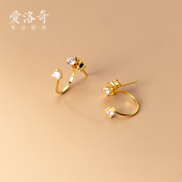 s925 sterling silver geometric hollowed bar rhinestone oval earrings