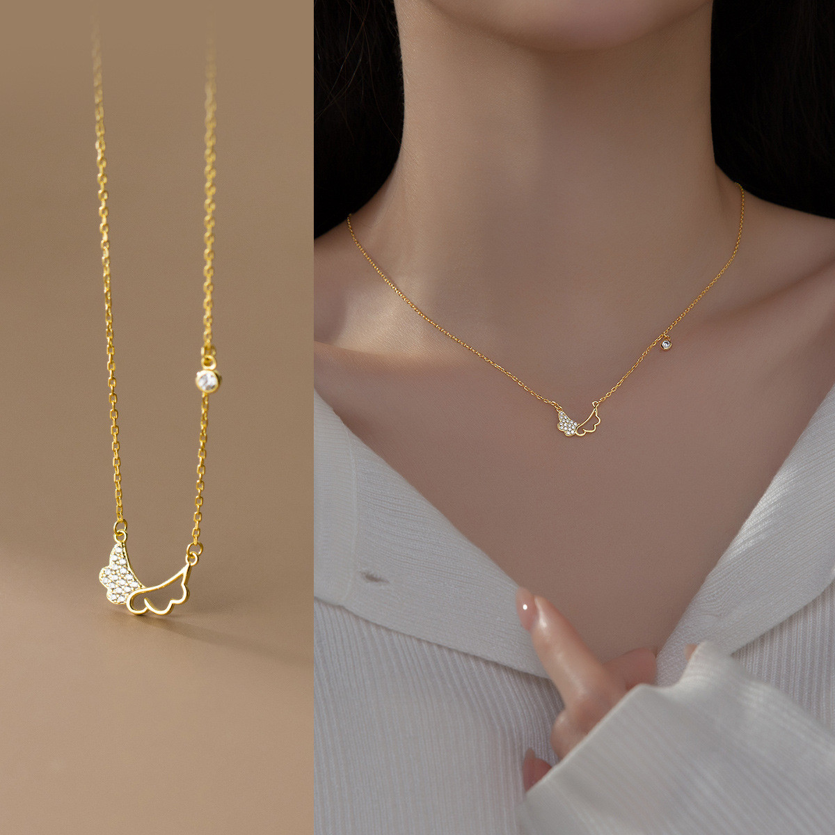 s925 sterling silver pendant sweet doublelayer butterfly necklace