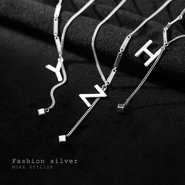 s925 sterling silver doublelayer letter unique chic geometric necklace