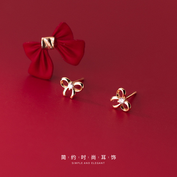 s925 sterling silver simple trendy rhinestone sweet earrings