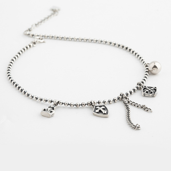 s925 sterling silver silver vintage trendy simple doublelayer silver charm bracelet