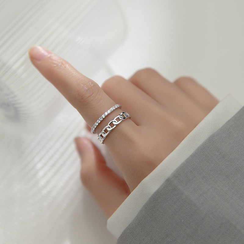 s925 sterling silver fashion chic rhinestone stars adjustable ring