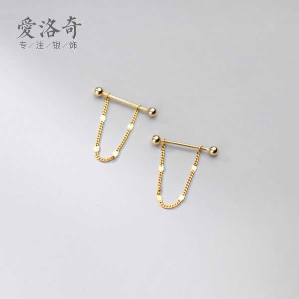 s925 silver asymmetric chain geometric earrings