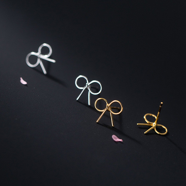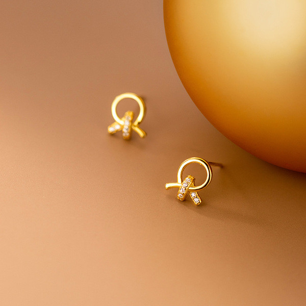 s925 sterling silver trendy sweet cute rhinestone bow chic simple earrings