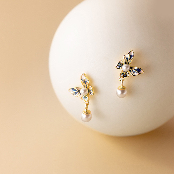 s925 sterling silver simple trendy rhinestone circle pearl chic fashion earrings