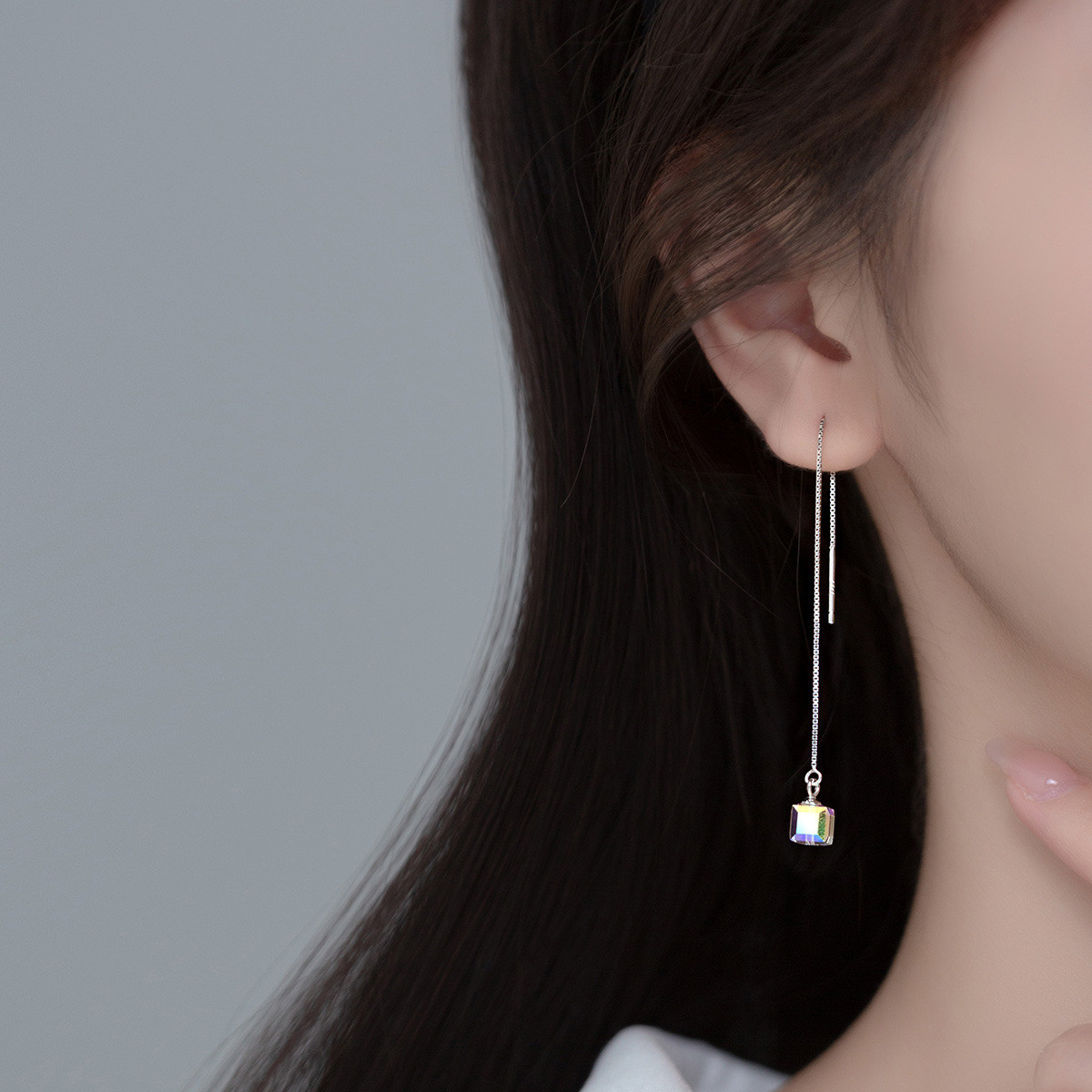 s925 sterling silver simple trendy chic fashion rhinestone earrings