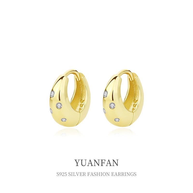 s925 sterling silver small trendy chic rhinestone hollowe earrings