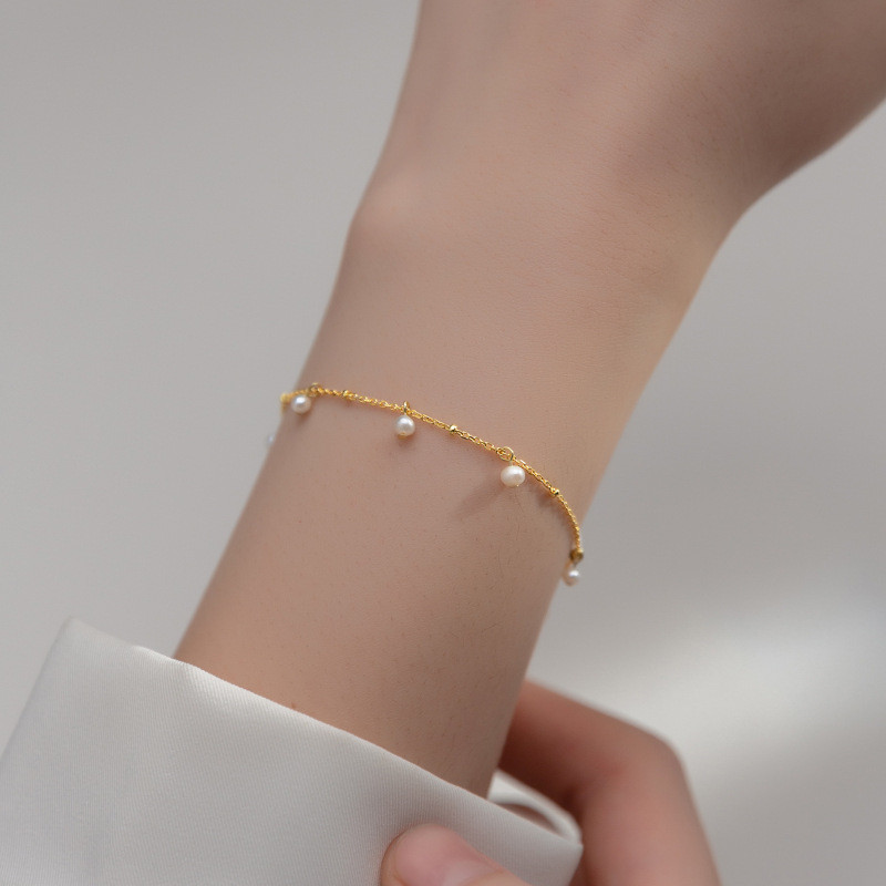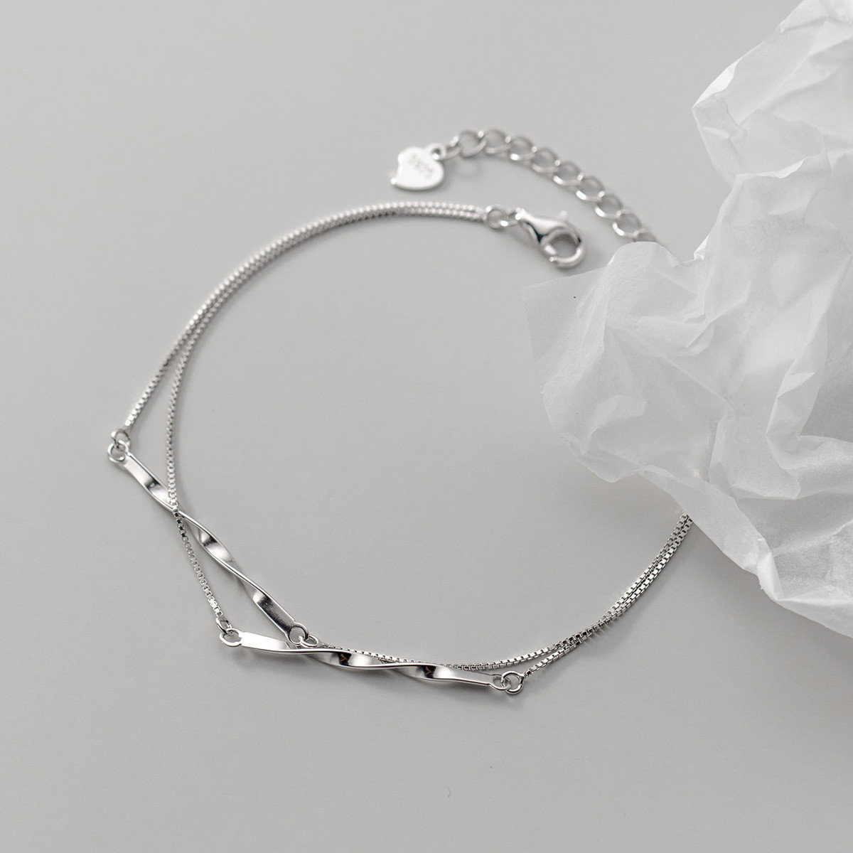 s925 sterling silver doublelayer sparkling square pendant pearl anklet trendy chic bracelet