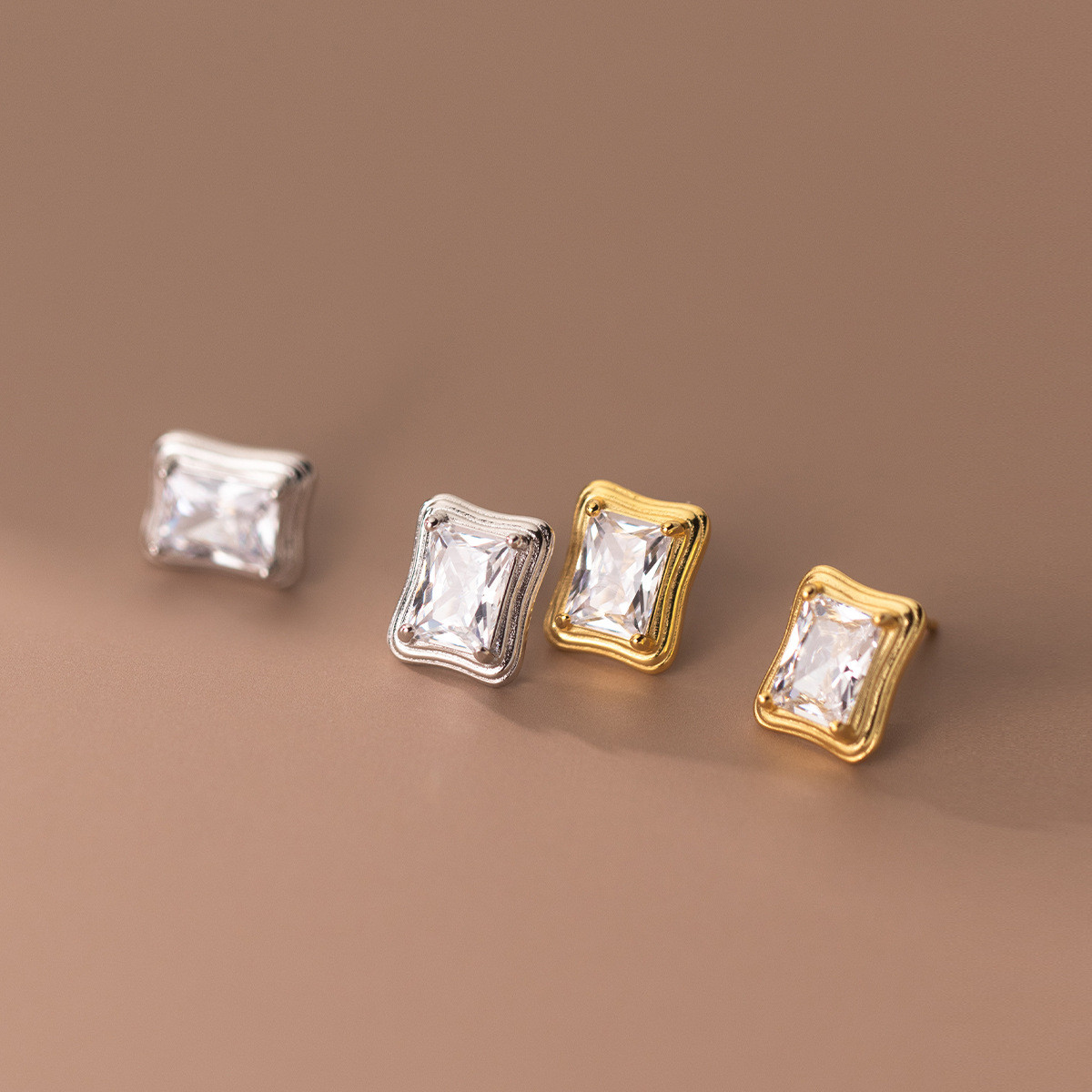 s925 sterling silver chic asymmetric rhinestone small sweet earrings